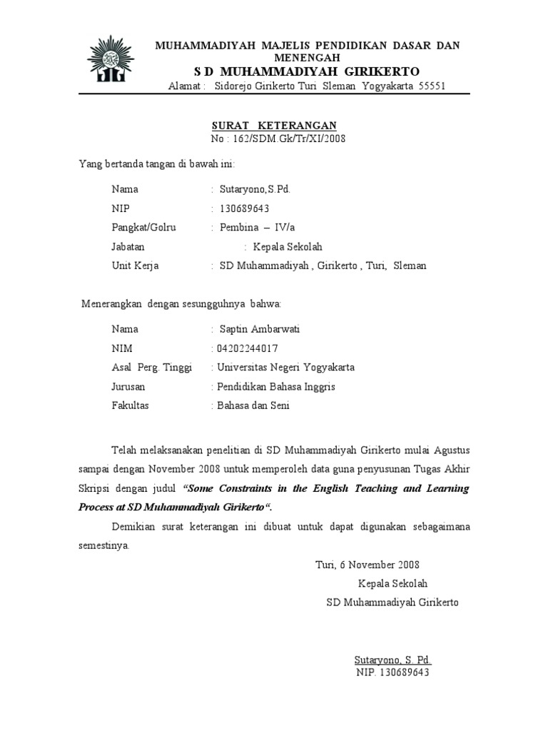 Mohon maaf apabila terdapat kesamaan nama/tempat/informasi lain karena surat yang dibuat hanya bertujuan sebagai percontohan tanpa ada maksud apapun contoh surat pernyataan skripsi. Contoh surat pernyataan hasil wawancara.